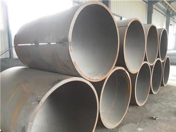 ①卷板成型的钢管在每段焊接完毕后,需上机‘校圆’,在弧度偏小的部位往复滚卷,去除内应力,提高钢管圆度。